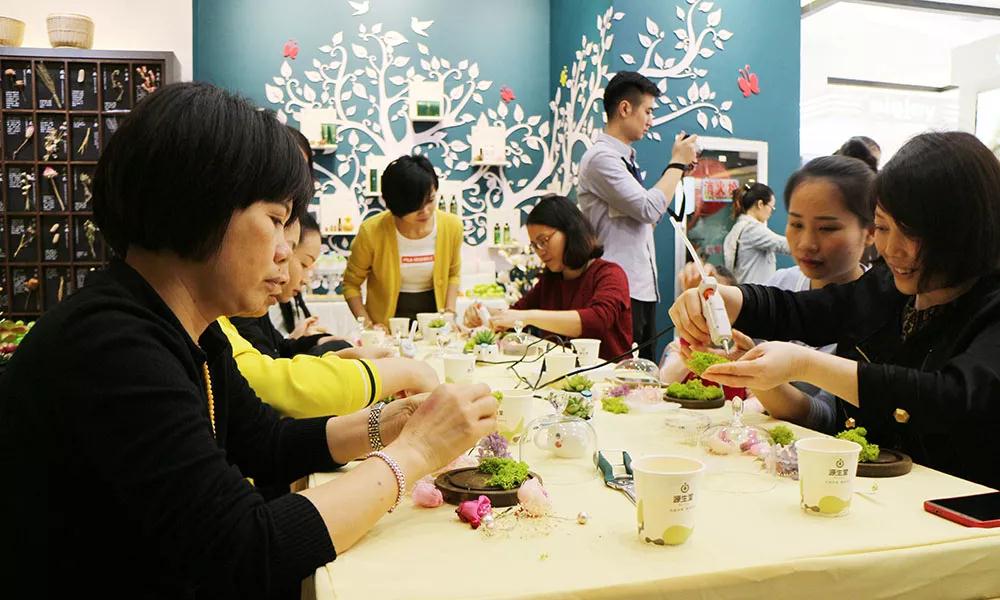 活動(dòng)現(xiàn)場(chǎng)授課老師首先向源生堂VIP客戶們介紹了永生花花藝的理論和技巧,現(xiàn)場(chǎng)展其技藝及藝術(shù)魅力。大家全神貫注,現(xiàn)學(xué)現(xiàn)用,將學(xué)到的知識(shí)靈活的融入到自己的作品中,通過(guò)親手完成的作品,展示了自己對(duì)色彩、層次、空間和美的理解?;顒?dòng)過(guò)程中,源生堂的工作人員還向客戶介紹了源生堂會(huì)員增值服務(wù)體系,使客戶了解到最新的源生堂服務(wù)與資訊。