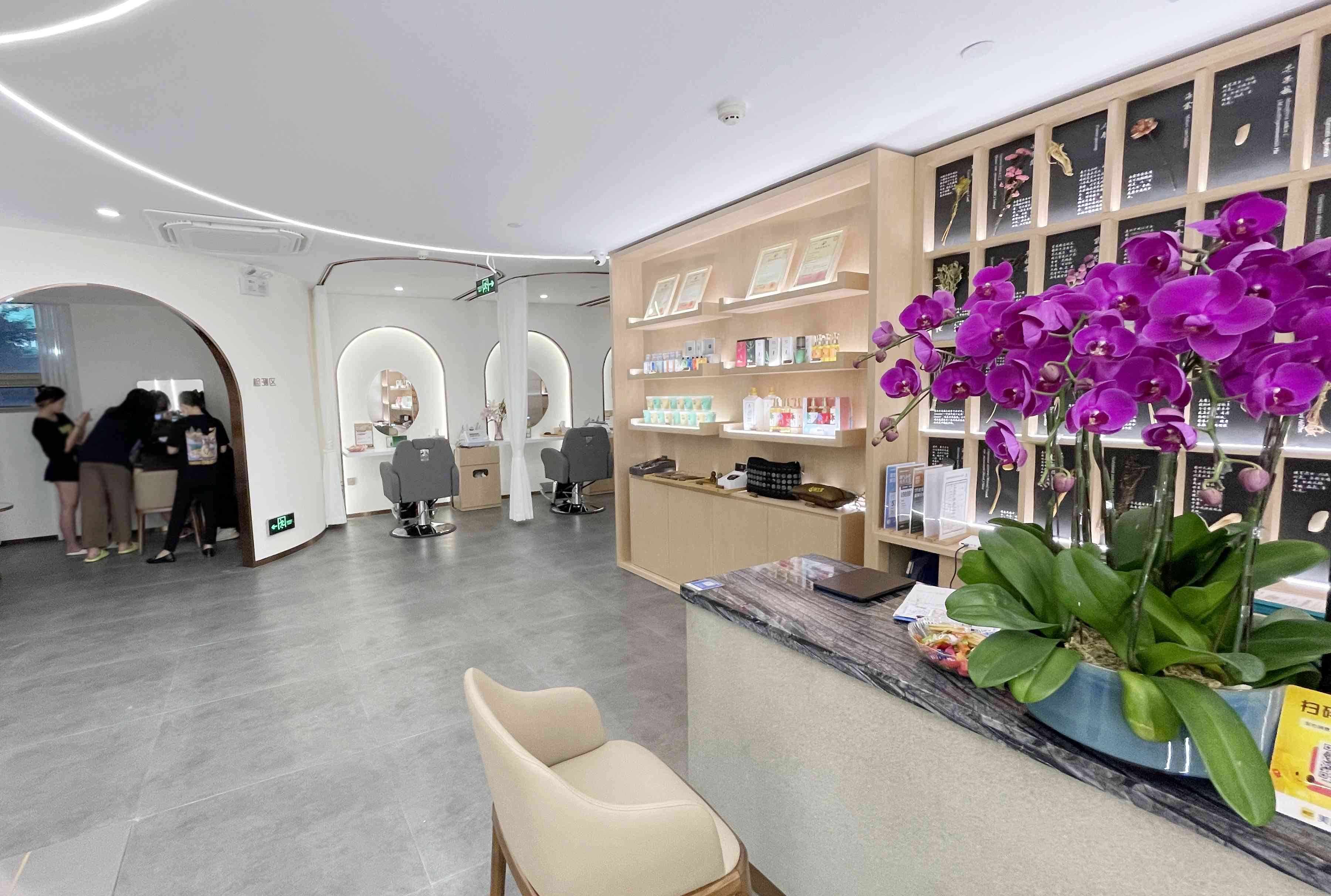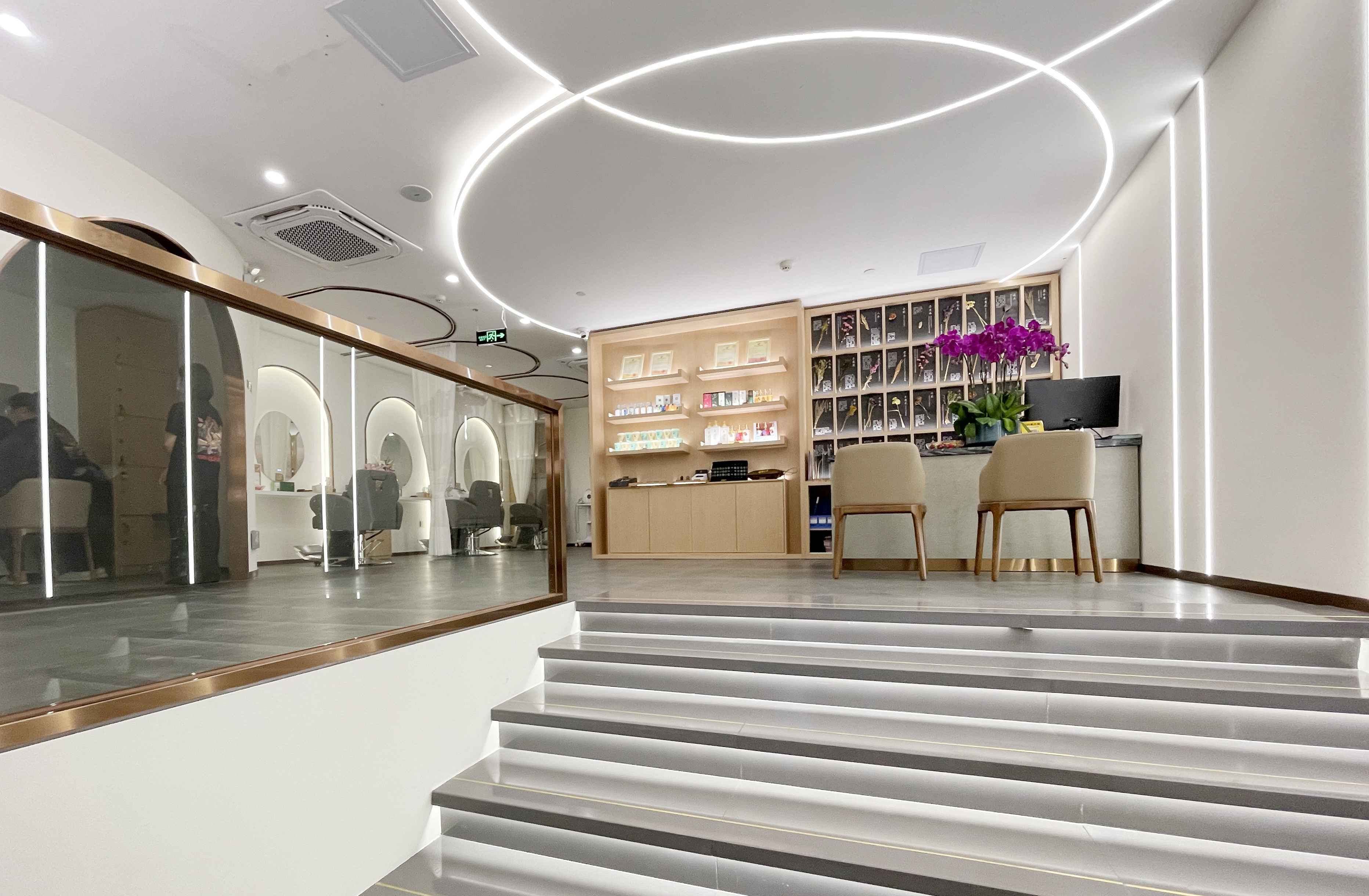 店內(nèi)沒有過多繁雜的裝飾,靜謐空間,分區(qū)合理,在繁華都市開辟一處寧靜治愈之地,在這里您可以享受一段充滿儀式感的養(yǎng)發(fā)時(shí)光,感受生活之外的小確幸。