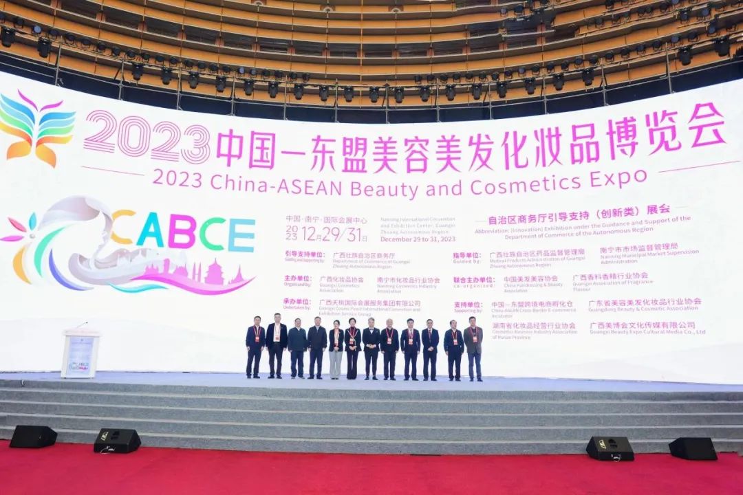 12月29日上午9時(shí)30分,開幕式在南寧國(guó)際會(huì)展中心朱槿花廳順利舉行。中國(guó)香料香精化妝品工業(yè)協(xié)會(huì)理事長(zhǎng)顏江瑛、中國(guó)美發(fā)美容協(xié)會(huì)黨支部書記、會(huì)長(zhǎng)唐德高、廣西壯族自治區(qū)商務(wù)廳二級(jí)巡視員白林平、廣西壯族自治區(qū)藥品監(jiān)督管理局黨組成員、副局長(zhǎng)萬秋、南寧市委常委、副市長(zhǎng)范曉敏、賀州市人民政府黨組成員、副市長(zhǎng)蔣曉軍、南寧市市場(chǎng)監(jiān)督管理局黨組書記、局長(zhǎng)李善欽、賀州市市場(chǎng)監(jiān)督管理局黨組書記、局長(zhǎng)蔣鋒、南寧市總工會(huì)黨組書記、常務(wù)副主席倫建、廣西國(guó)際博覽事務(wù)局展覽工作處處長(zhǎng)成功、中國(guó)科學(xué)院過程工程研究所研究員段東平、湖南省化妝品經(jīng)營(yíng)行業(yè)協(xié)會(huì)會(huì)長(zhǎng)易敬平、海南省化妝品協(xié)會(huì)會(huì)長(zhǎng)楊猛、廣西香料香精行業(yè)協(xié)會(huì)會(huì)長(zhǎng)肖筠、廣西怡亞通大澤深度供應(yīng)鏈管理有限公司董事長(zhǎng)聶峰輝、新加坡經(jīng)濟(jì)管理學(xué)院院長(zhǎng)周鵬邦、新加坡Simple Group集團(tuán)董事長(zhǎng)謝俊豪、廣西化妝品協(xié)會(huì)會(huì)長(zhǎng)、廣西和桂集團(tuán)·源生堂公司董事長(zhǎng)黃偉文等參會(huì)領(lǐng)導(dǎo)和全國(guó)化妝品行業(yè)精英及媒體朋友們,共同出席本次開幕式。