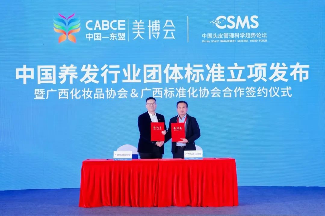 △中國(guó)養(yǎng)發(fā)團(tuán)體標(biāo)準(zhǔn)立項(xiàng)發(fā)布暨廣西化妝品協(xié)會(huì)&廣西標(biāo)準(zhǔn)化協(xié)會(huì)戰(zhàn)略合作簽約儀式